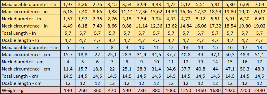 Max. Usable Diameter:
